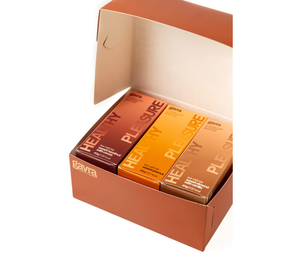 Ідеальний вибір для тих, хто стежить за раціоном і хоче спробувати всі наші низьковуглеводні смаки — шоу-бокс з асорті батончиків GAVRA.