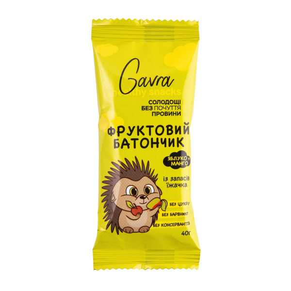 Батончик «Їжачок» — це смачний, яскравий і абсолютно натуральний фруктовий перекус, створений спеціально для дітей. У його складі лише три інгредієнти: сушений фінік, яблуко та манго. Без доданого цукру, без ароматизаторів, барвників чи консервантів — тільки те, що справді корисне.