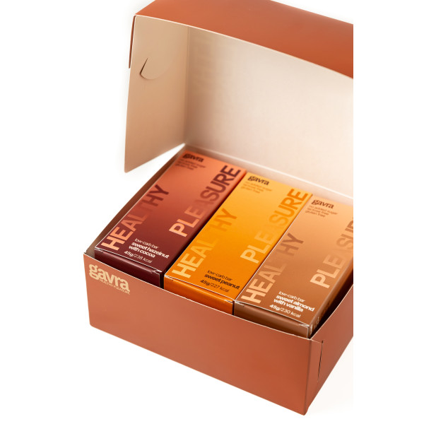 The perfect choice for those who are watching their diet and want to try all our low-carb flavors — a show box with assorted GAVRA bars. Each box contains 9 bars.